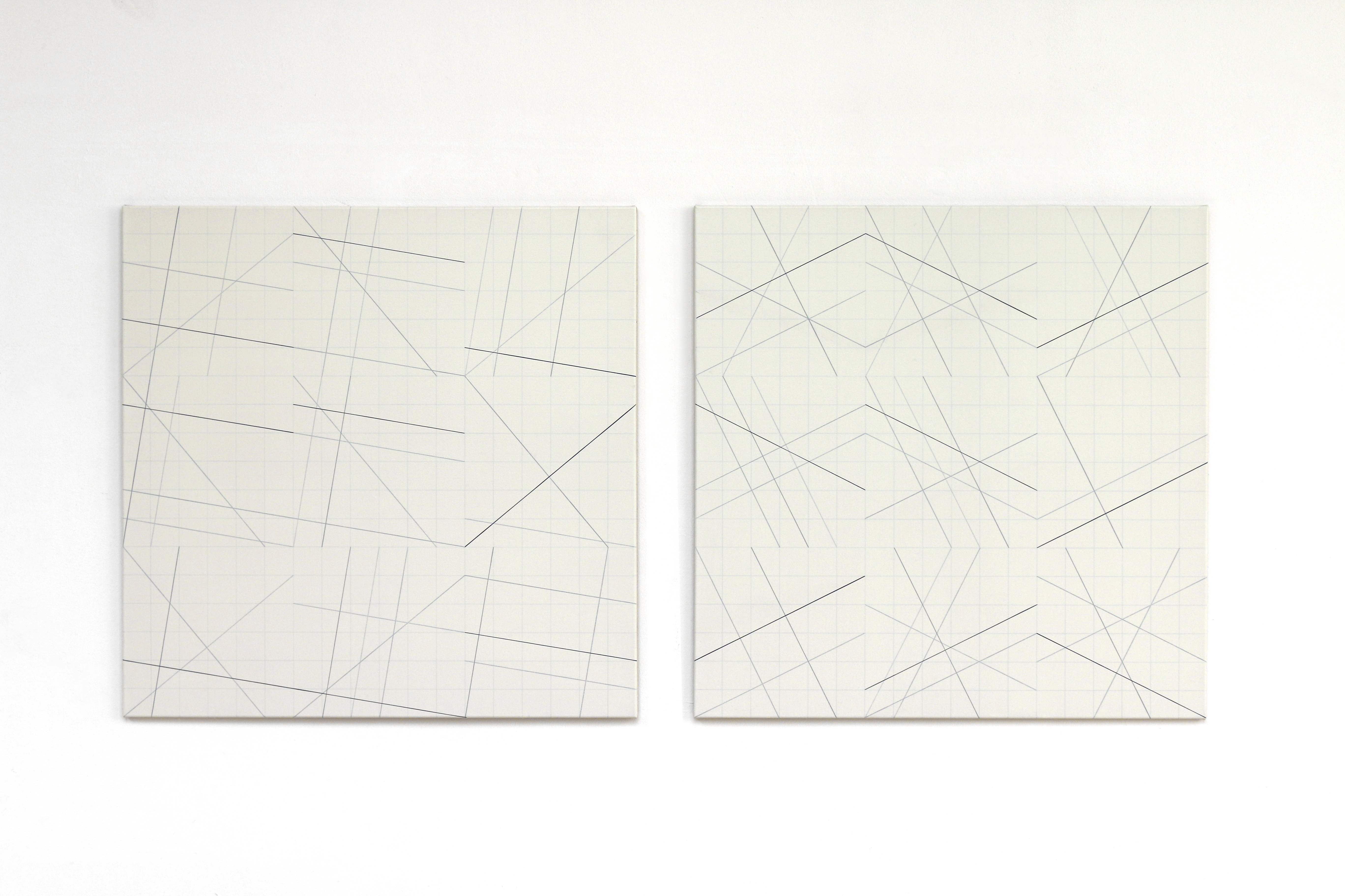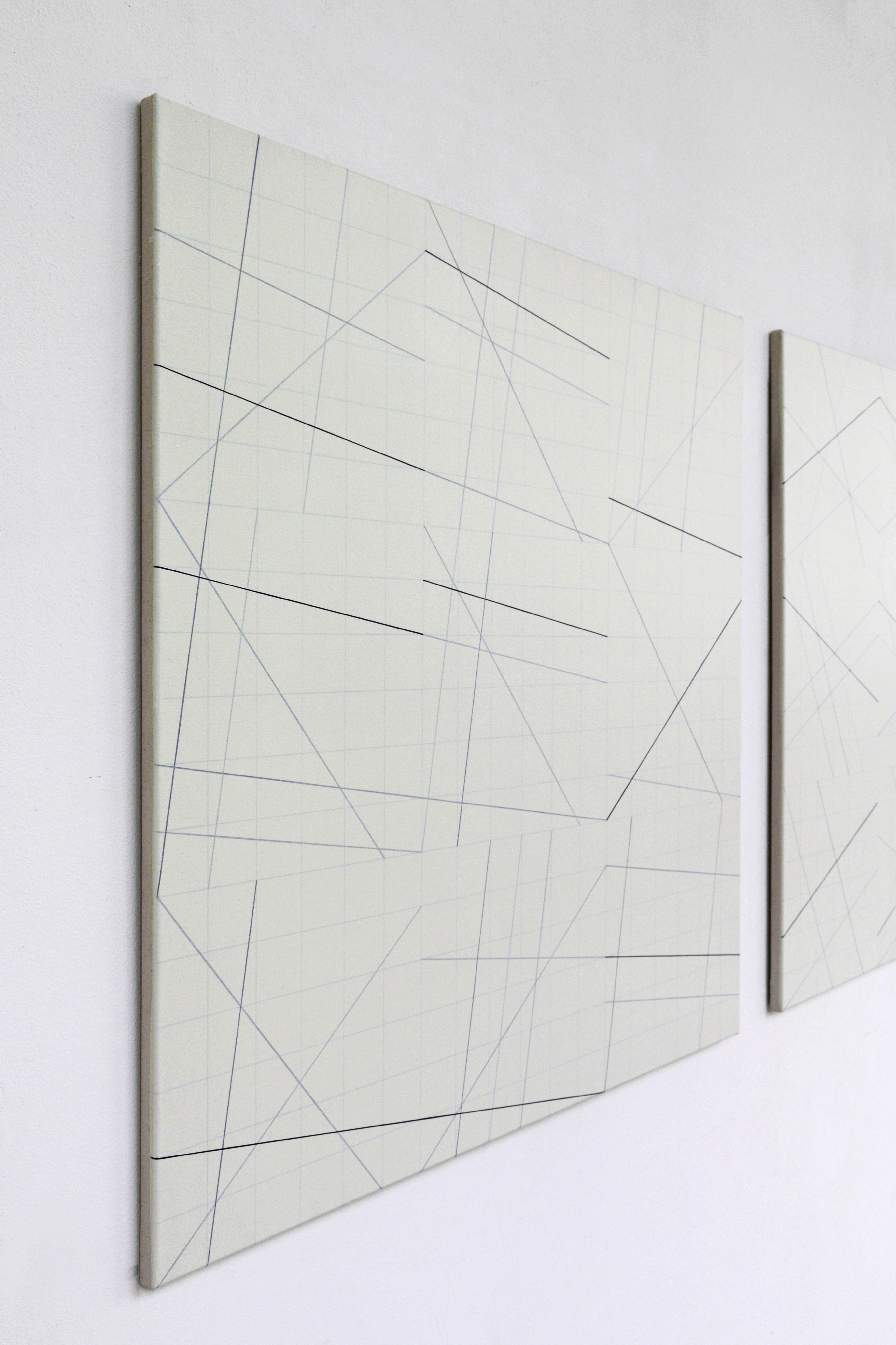 (1/6x3x3)6-Diptychon, 2018, Acryl und Kugelschreiber auf Leinwand, Je 90 x 90cm
