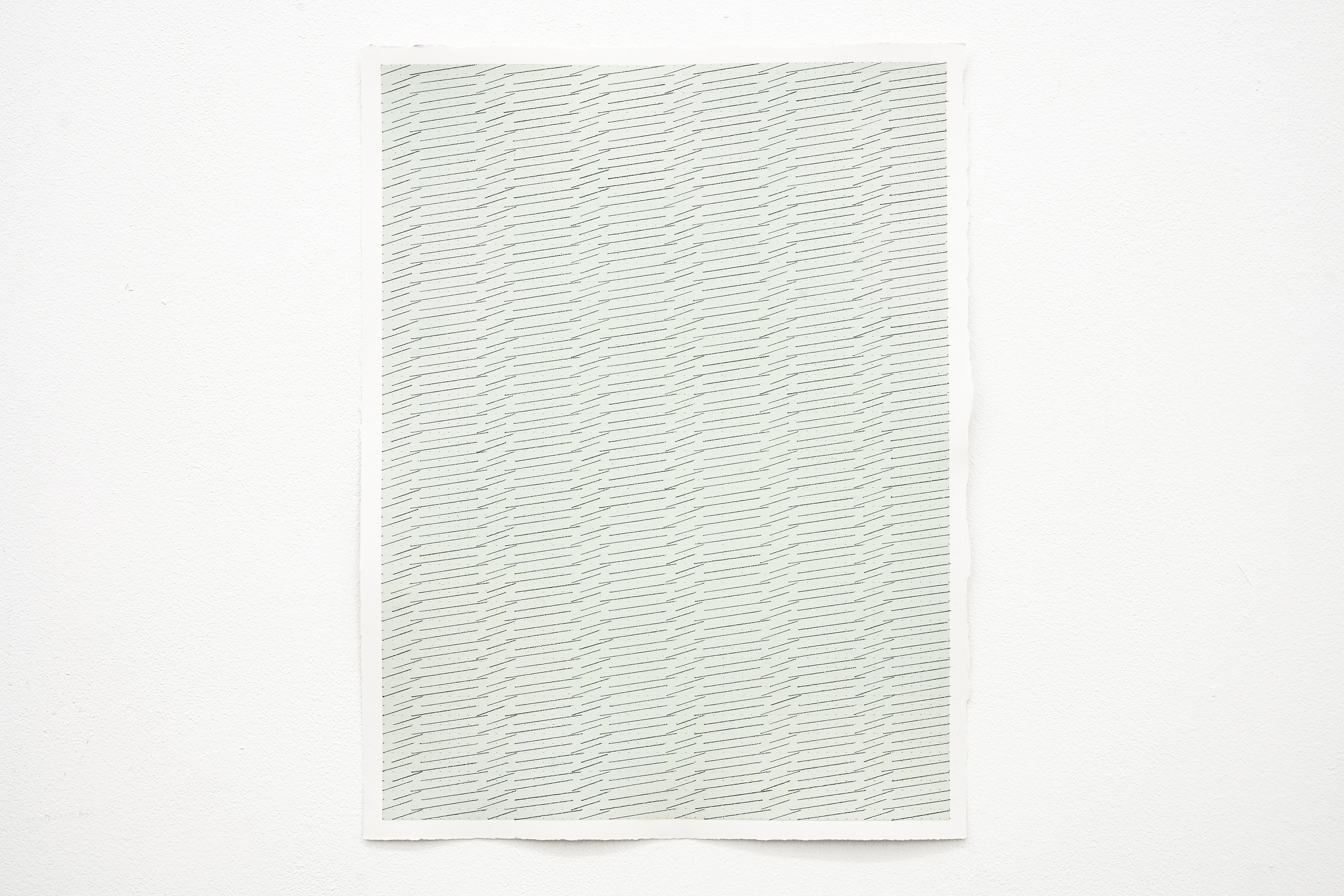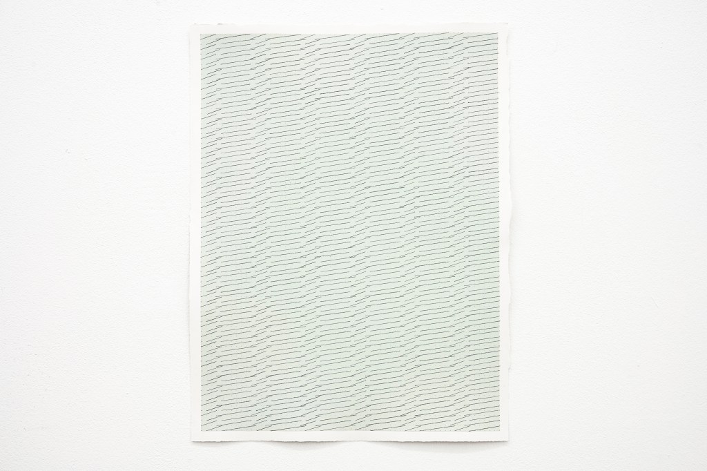 Die Farbe und die Bleistiftlinien werden von mir kontrolliert. Unregelmäßigkeiten im Druck auf den Bleistift, im Graphitpulver und in den winzigen Zwischenlinien sind hingegen nicht kontrollierbare Elemente. Diese Zufallsmomente im Arbeitsprozess sind für mich bedeutsam.