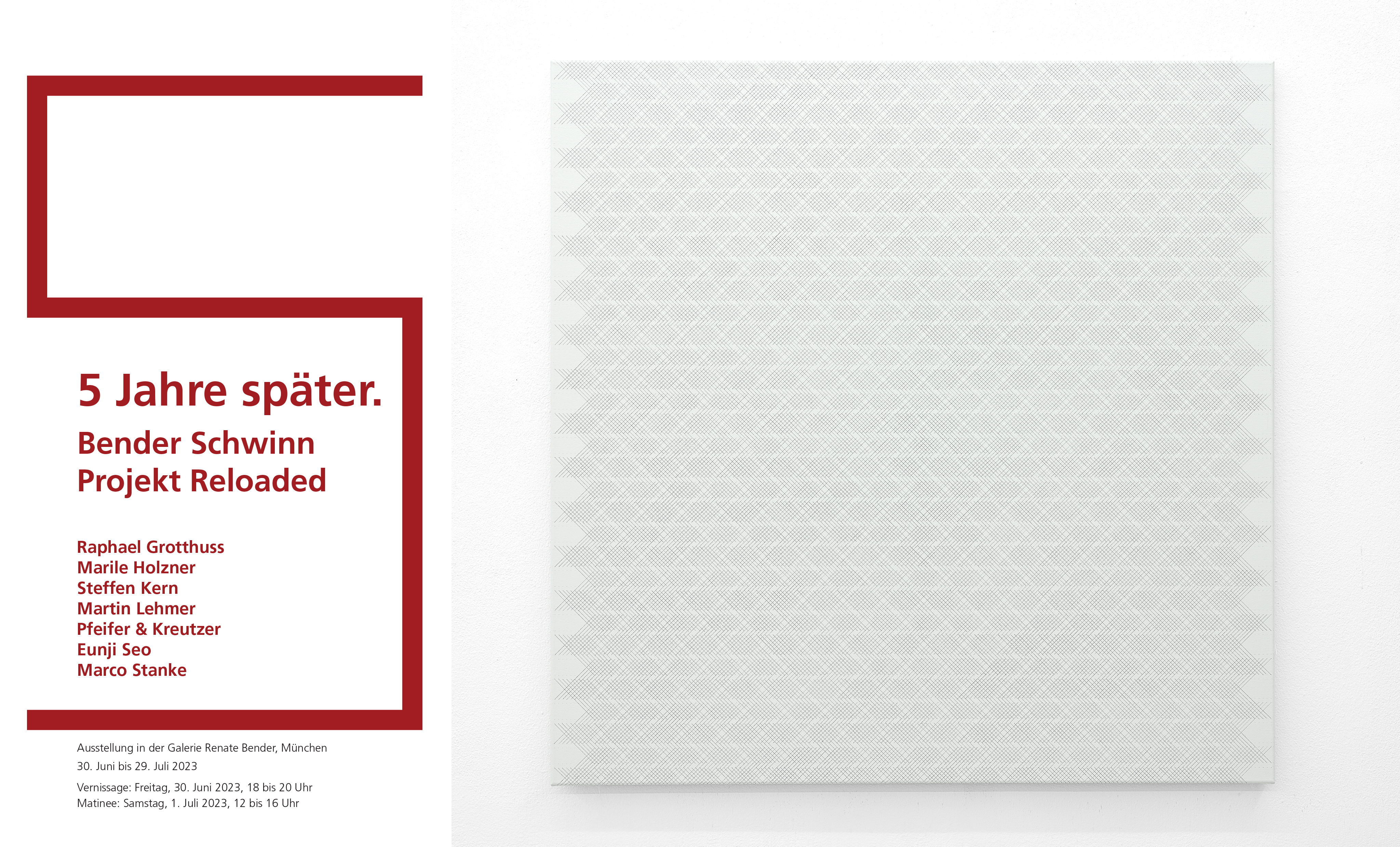 Fünf Jahre nach dem letzten „Bender Schwinn Projekt“ laden wir nun erneut eine Auswahl der damals gezeigten Künstlerinnen und Künstler ein. Einige sind in den festen Künstlerstamm der Galerie eingezogen, andere sind uns verbunden geblieben und wir verfolgen ihren Werdegang mit Freude und Neugier. Während die einen klare Vorstellungen davon haben, wohin ihr künstlerischer Weg geht, sind andere noch auf der Suche. Es ist uns eine große Freude, diese Entwicklungen zu begleiten und mit Ihnen zu teilen.