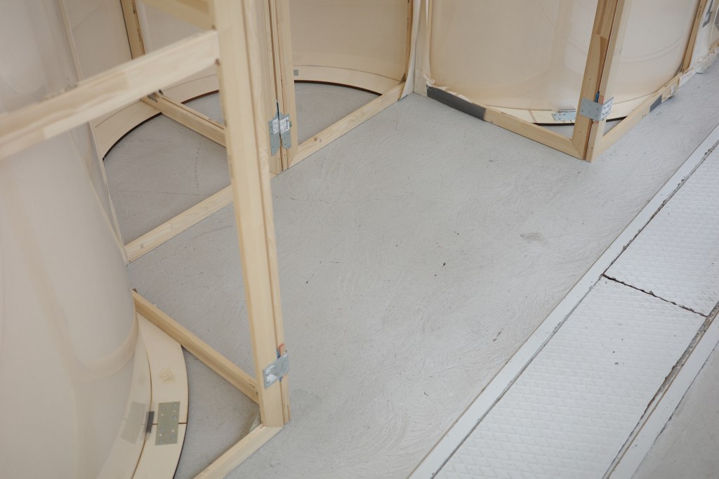 (3,7), 2023, Acrylic and Pencil on Curved Canvas, 240 x 760 cm (Each 240 x 95 cm)