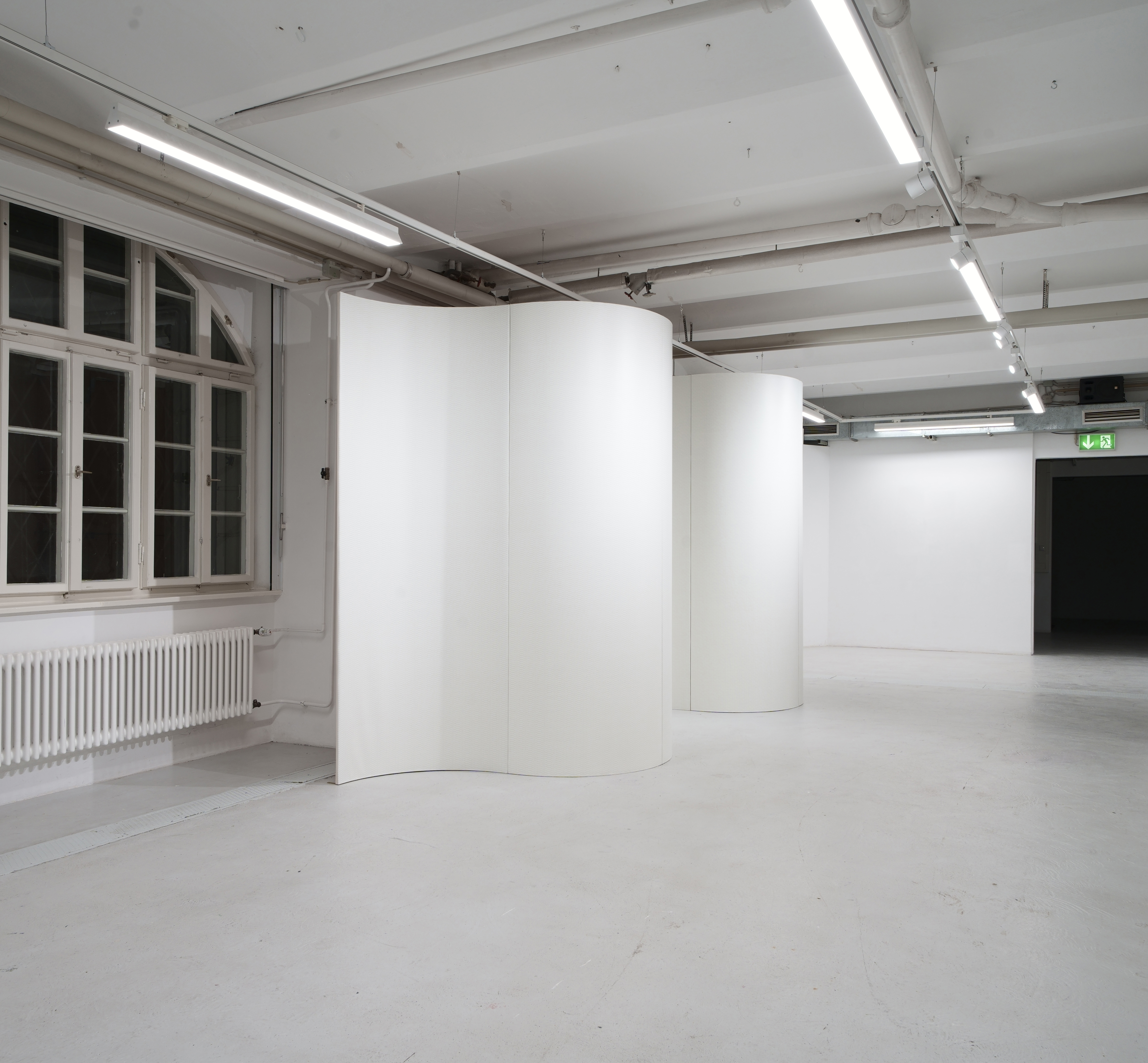 (3,7), 2023, Acryl und Bleistift auf gebogenem Leinwand, 240 x 760 cm (Each 240 x 95 cm)