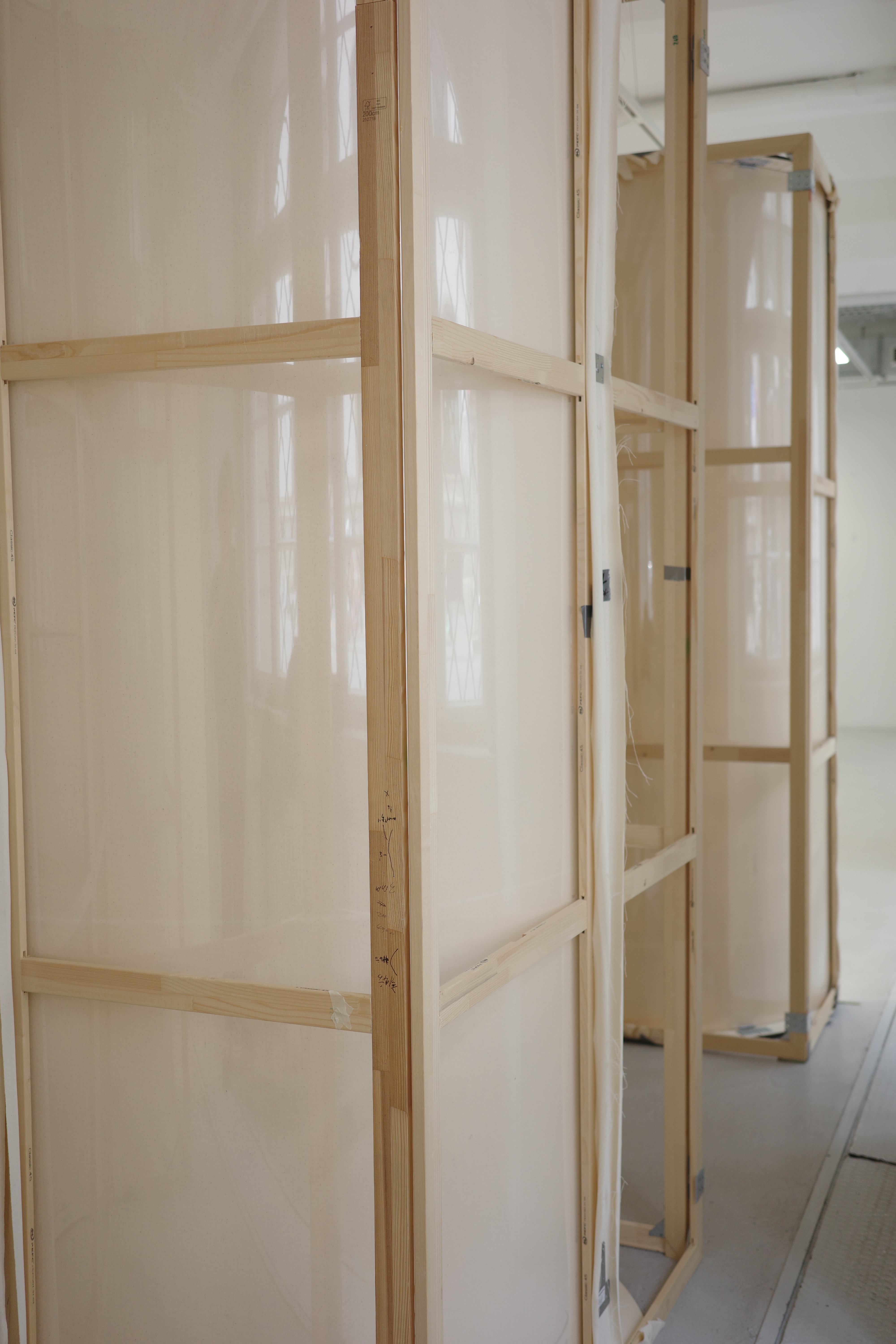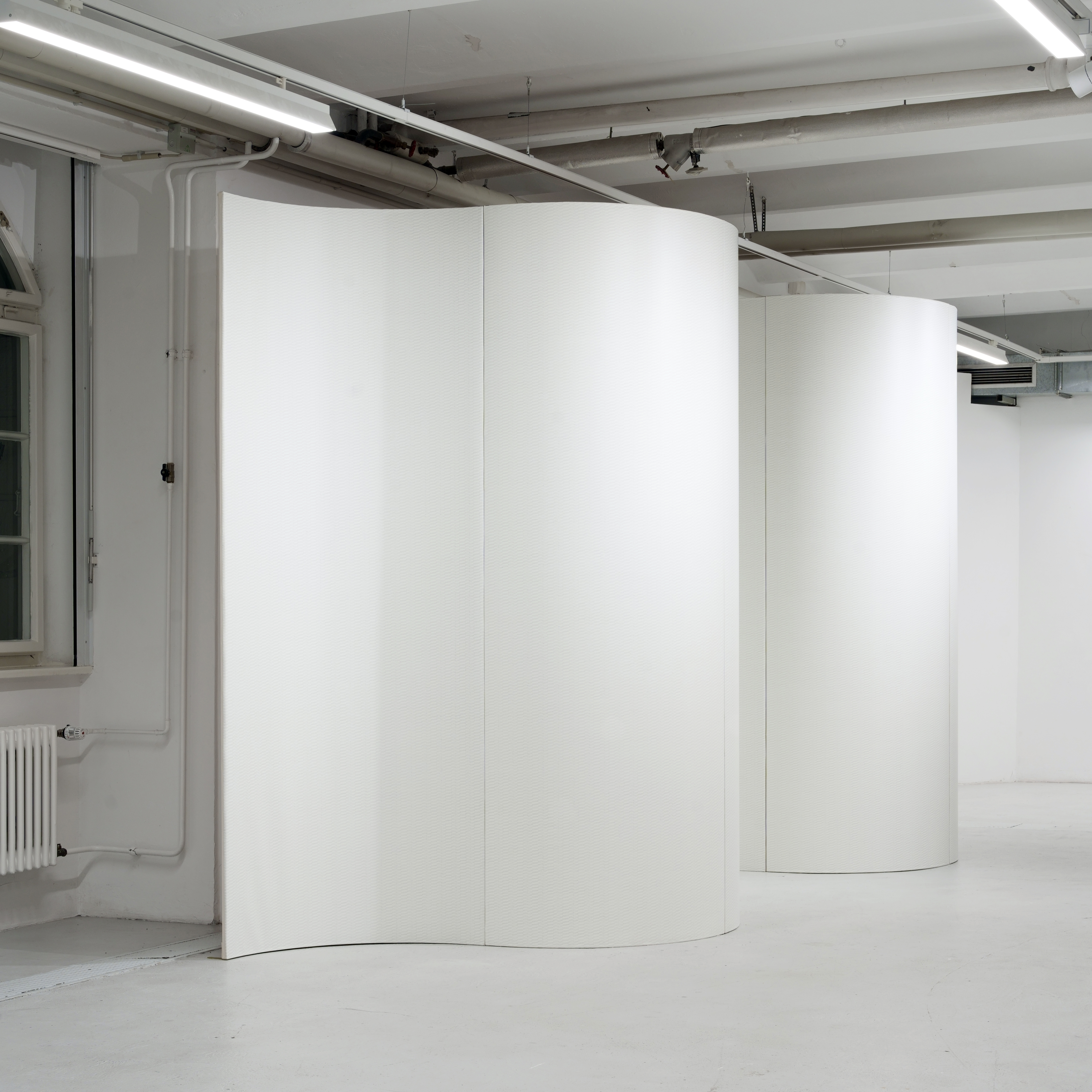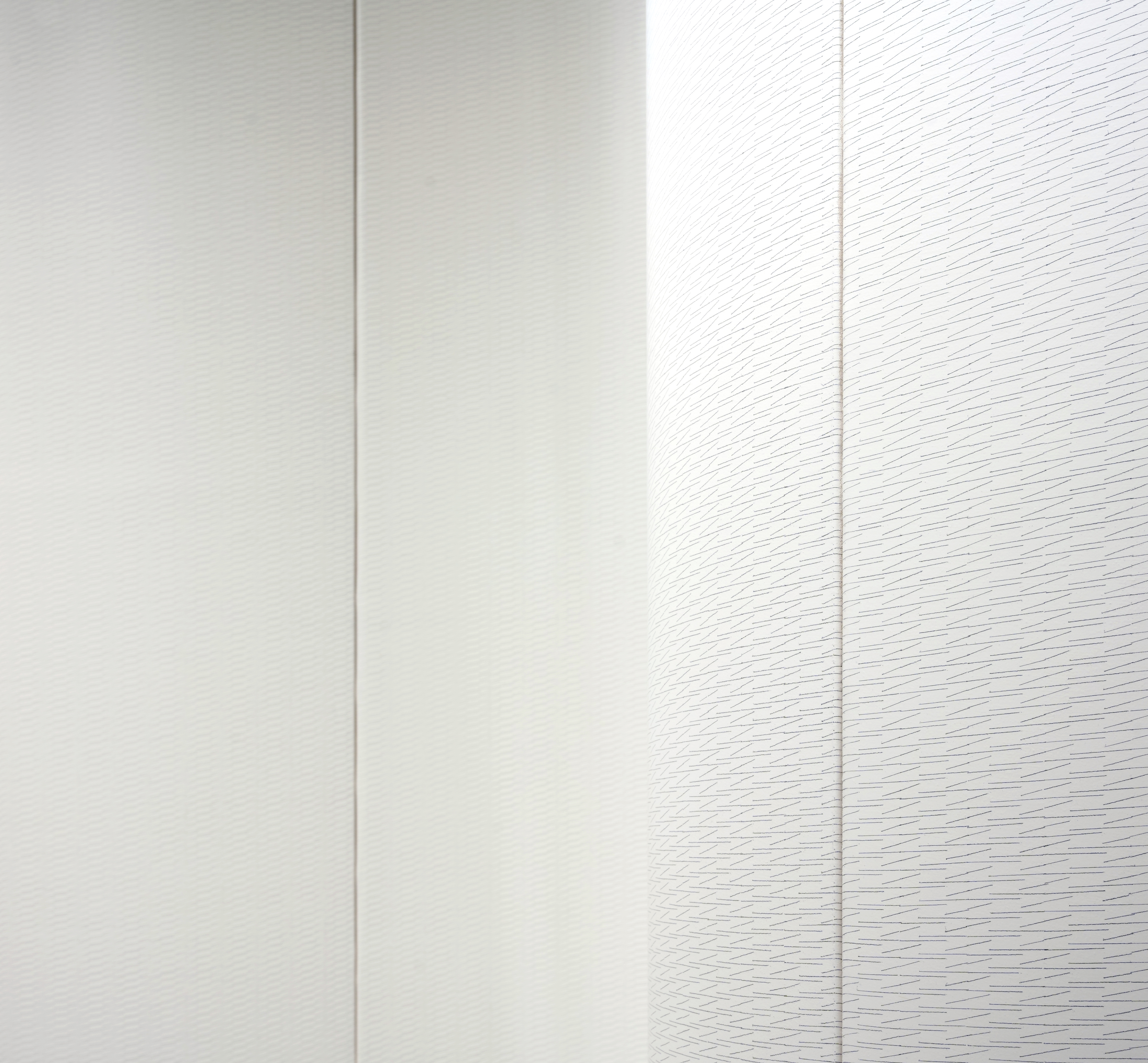 (3,7), 2023, Acrylic and Pencil on Curved Canvas, 240 x 760 cm (Each 240 x 95 cm)